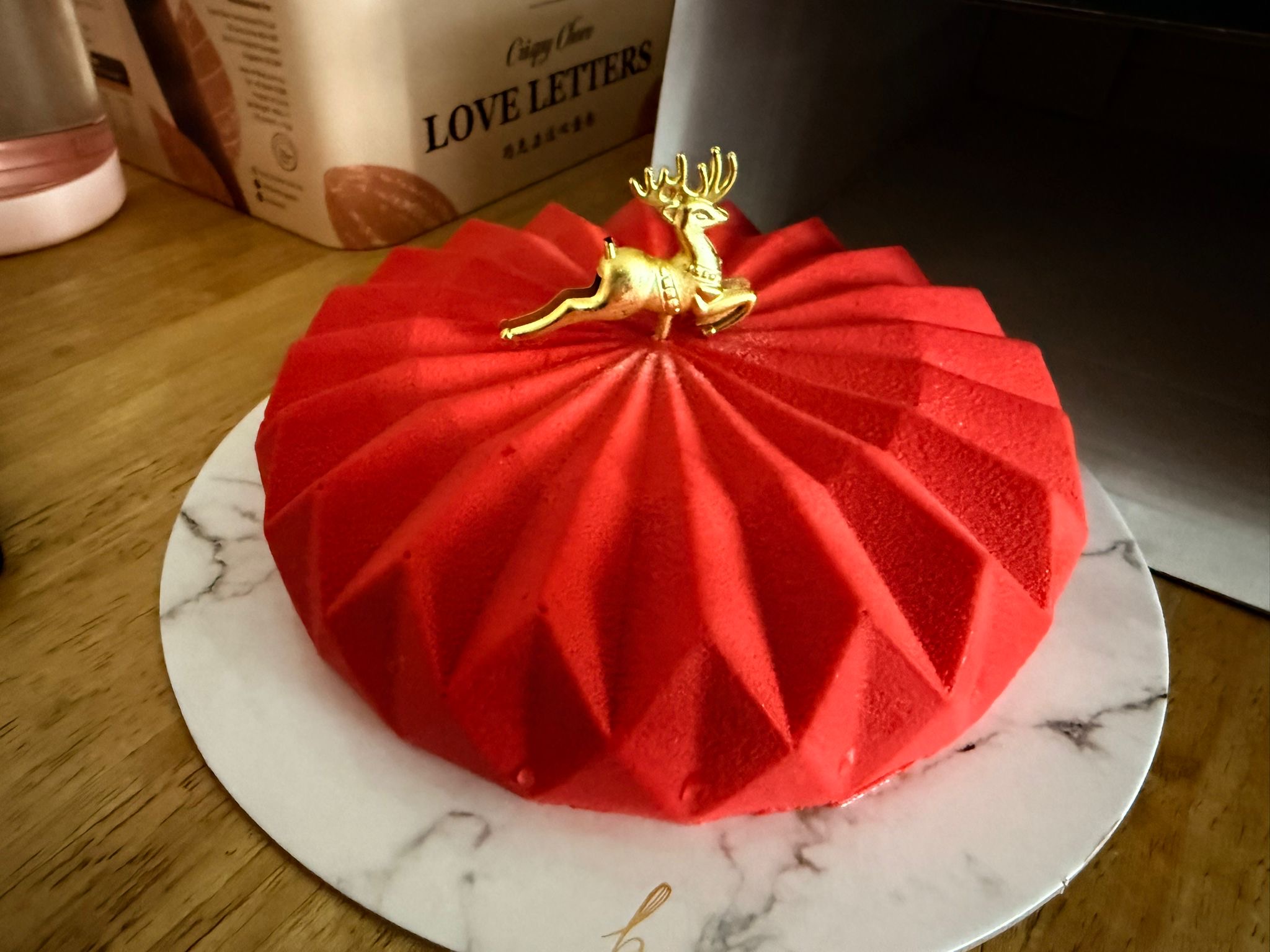 Each cake comes with 1pc 5.5" gold candle, Happy Birthday topper, and Reindeer topper.